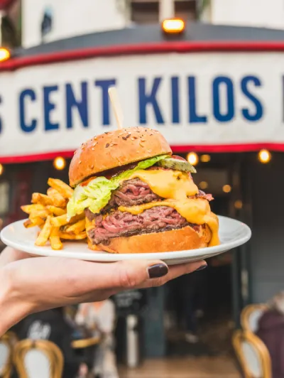 Située dans une rue animée du 11ᵉ arrondissement de Paris, Les Cents Kilos est une brasserie de quartier où se croisent habitants, habitués et curieux venus goûter une cuisine française traditionnelle préparée avec cœur. Notre nom rend hommage à un ancien commerce de charcuterie où l’on vendait "au cent kilos" — un clin d'œil à l’histoire du lieu et à notre attachement à une cuisine généreuse, accessible et authentique.